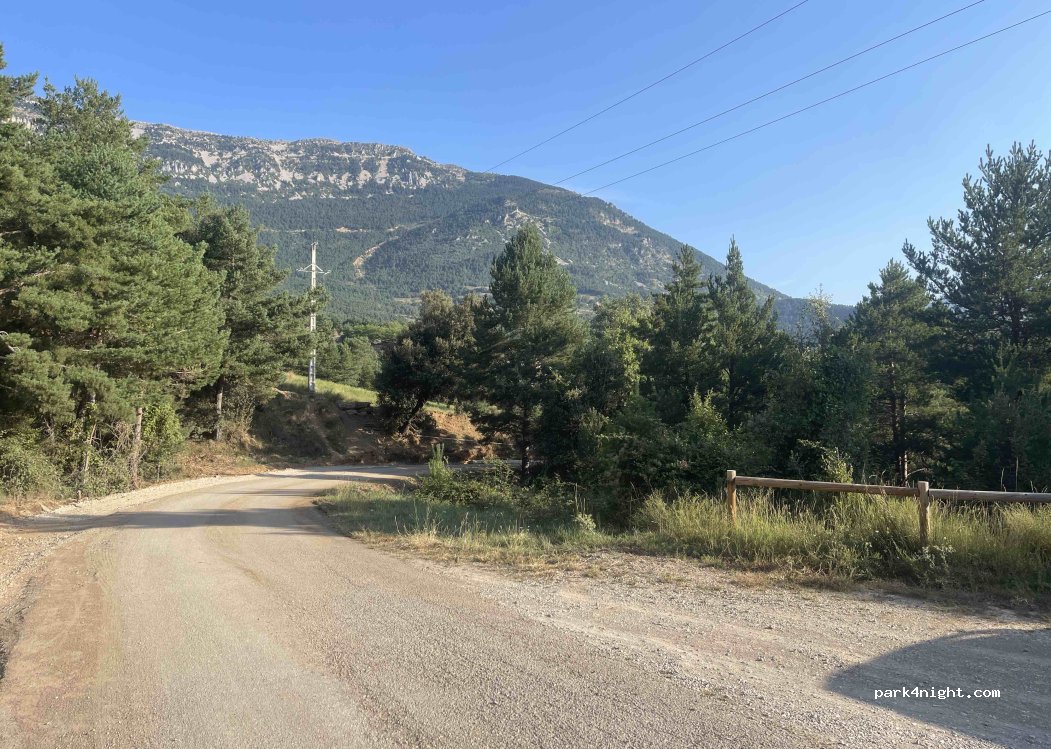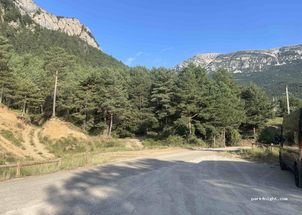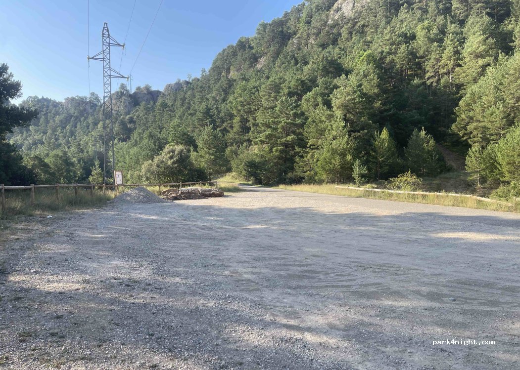 Lloc amb espai per aparcar vàries furgonetes, al costat de la carretera aparentment tranqui•la. Em passat la nit de Dissabte a Diumenge i el jovent de la zona només feien que passar amb els cotxes a munt i a vall pitant i amb la música a tope cada cop que passavent per davant de nosaltres, tota la nit. Mal lloc pel cap de setmana.