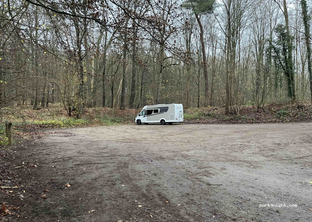 Parking forestier avec vue sur le grand lac Eutiner. Aucune interdiction de camping-car / interdiction de séjour d'une nuit évidente.