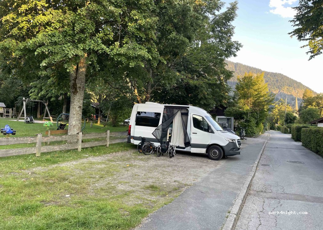 Nice parking lot next to the outdoor pool. ONLY suitable for smaller campers, as the driveway is very narrow. Currently no prohibition signs. Especially great for travelers with children because there is a playground and football field right next to it. Only 5 minutes to the center with shops.