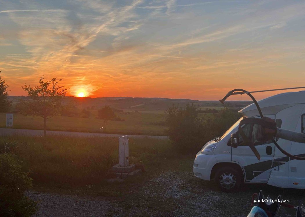 Nachts sehr ruhiger Stellplatz. Tagsüber toller Weitblick. Unterlegkeile erforderlich.