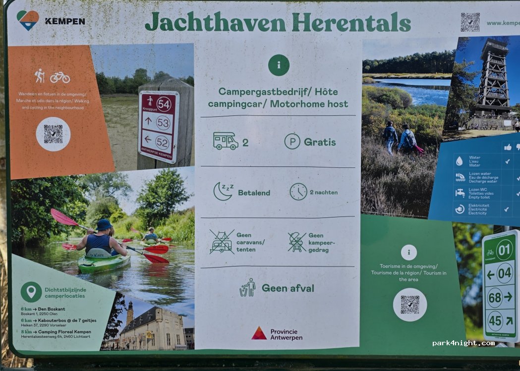 beautiful spot on canal next to Herentals marina, no amenities cafe and shower/toilets are gone. no charge, electric is for the boats but ask harbour master if possible to hook up 1 euro. thanks Herentals town hall for this spot.