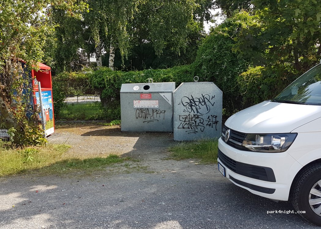 Kostenloser Parkplatz. Keine Dienstleistungen. Glasflaschenbank an der Seite. Sehr laut! Fluglärm!