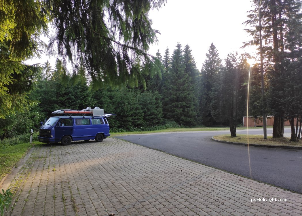 Perfekt für 1 oder 2 Nächte, sehr ruhig, Nachts allein, der Preis von 6,-€ für 24h sehr fair. Der hübsche Ort ist einen Spaziergang wert. Bei Schnee der ideale Ausgangspunkt um in den Skiwanderweg "Tellkoppe" einzusteigen. Leichter Schrägstand der unproblematisch ist.