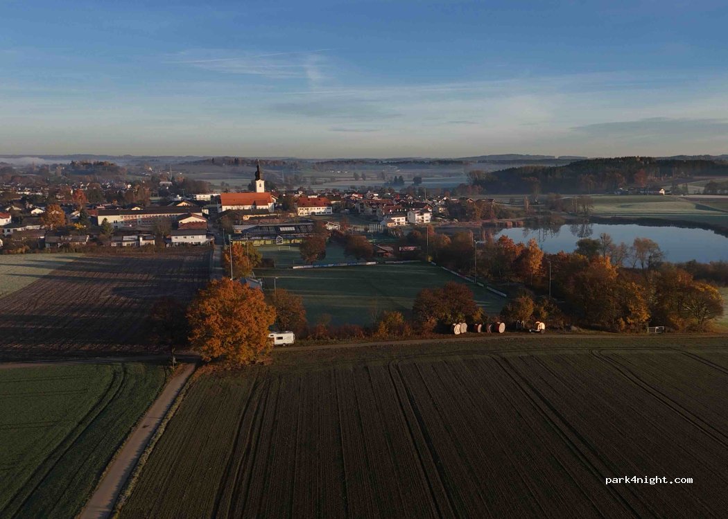 Right next to a soccer field. The parking lot is relatively full on match days. Quiet location. A butcher and a bakery can be reached within a few minutes on foot, as well as a good Bavarian tavern (Sanftl).