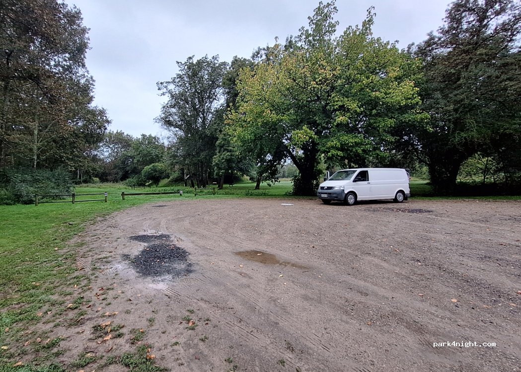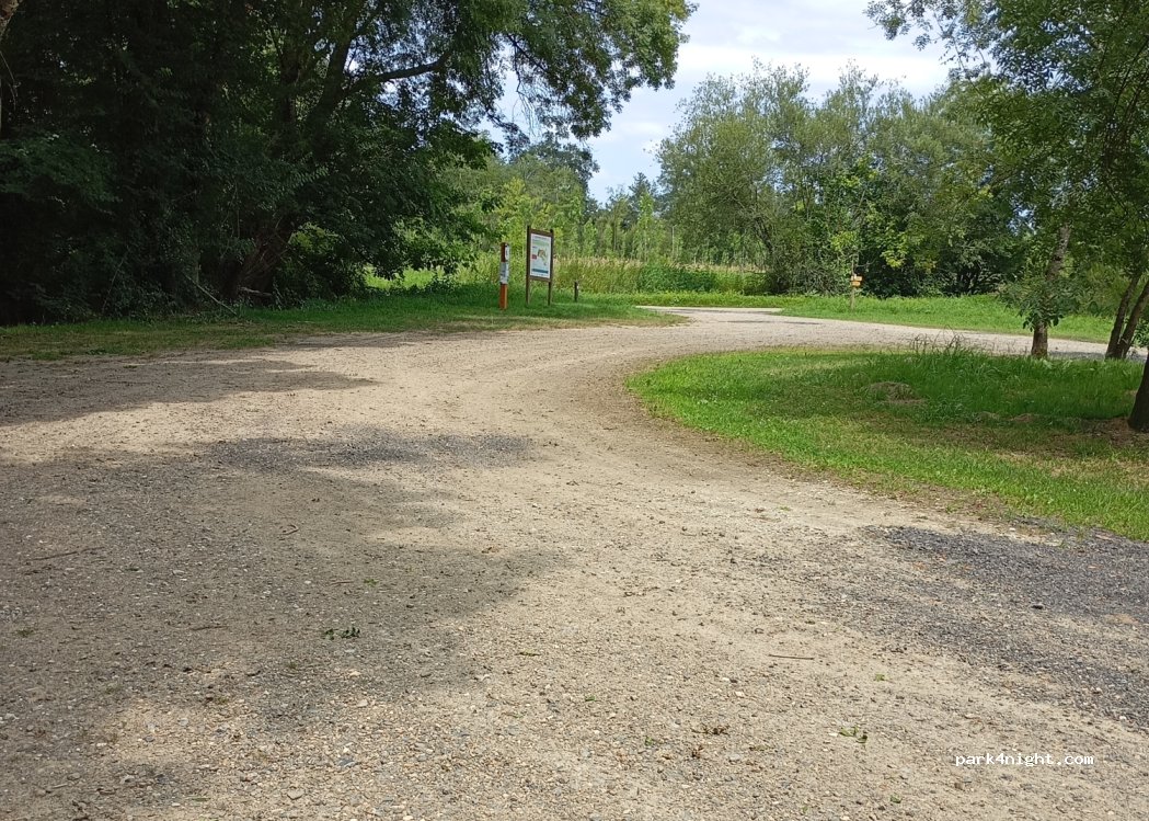 Grand parking à côté d'un départ de parcours de santé, au calme. Route étroite sur 800m pour rejoindre le parking, en cas de croisement avec un autre véhicule, obligé de rouler sur le bas côté, dans l'herbe, donc attention en cas de forte pluie, mais aucun soucis, même avec un grand camping-car (7m pour nous). Pas de frelon ou moustique encore à cette période.