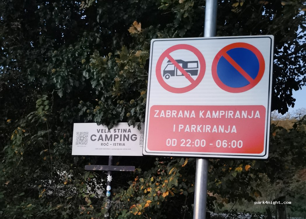 Attenzione il parcheggio é solo diurno! la Polizia controlla e manda al campeggio di Roč, campeggio nuovo e ben attrezzato! Camping Vela Stina