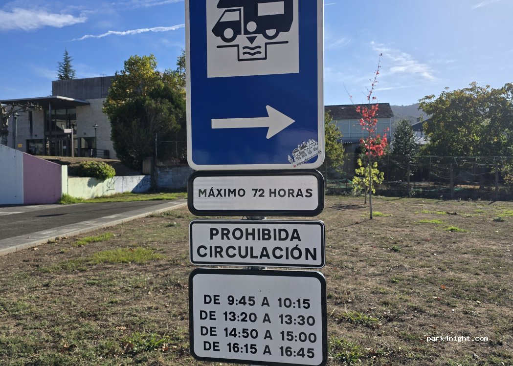Descanso perfecto. Sin ruidos hasta las 9h que empieza el colegio, pero justo en la zona de autocaravanas son clases de los más pequeños.Horario de no circular por precaución,en horas de entrada/salida del cole,el acceso se comparte con el paso hacia el colegio.Cerca del Dia,lavandería, oficina de turismo. Aprovechar para andar por el paseo fluvial y en el pueblo los murales de algunas casas