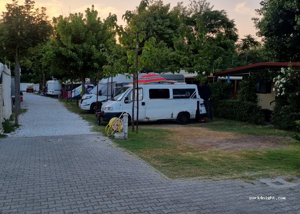 Spędziliśmy jedną noc, bardzo fajna lokalizacja, plaża po drugiej tronie ulicy, lokalne knajpy z owocami morza. Miły właściciel, sanitariaty w porządku. Dużo stałych domków i przyczep. Obiekt nastawiony na klienta włoskiego. Przepiękne, olbrzymie sosny przy plaży. Warto odwiedzić na jedną/dwie noce.
