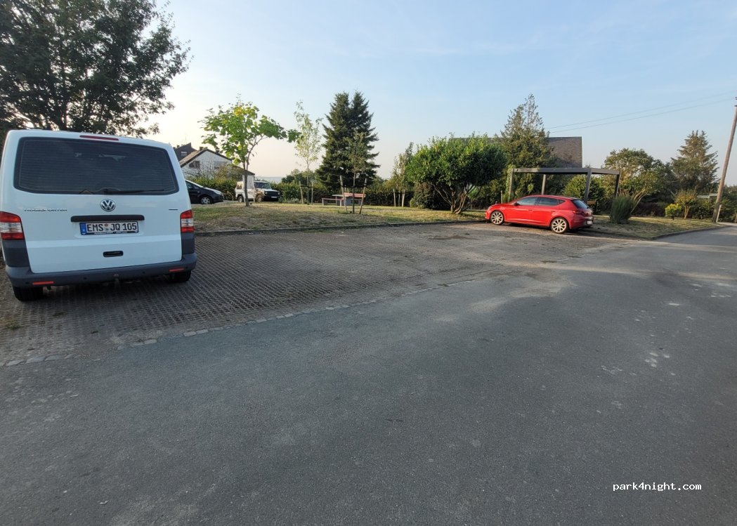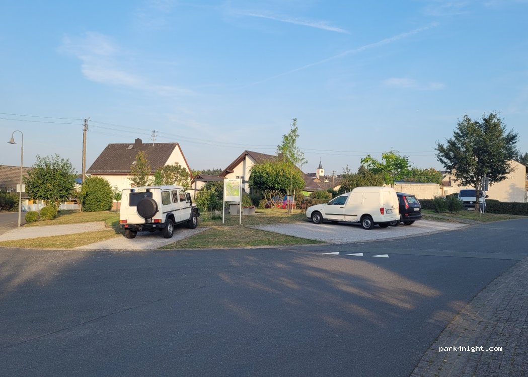 Kostenloser ruhiger Wanderparkplatz im Wohngebiet mit Parkbank und Tisch