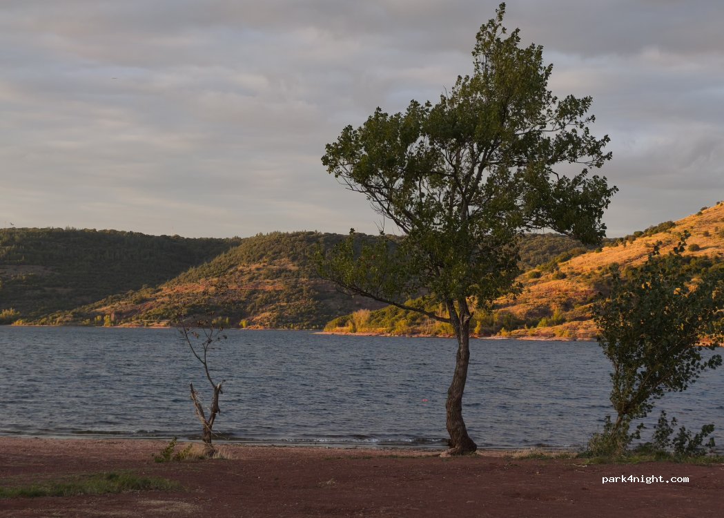 Zeer rustige grote parking plaats met zicht op het meer. Er staat een bordje met verboden te overnachten, maar we waren lang niet de enige die het er toch op waagden (en zonder problemen). Geen voorzieningen en bij nat weer is de ondergrond heel vuil en kan het hier en daar moeilijk berijdbaar zijn. Heel mooie plaats om verschillende wandelingen te doen.