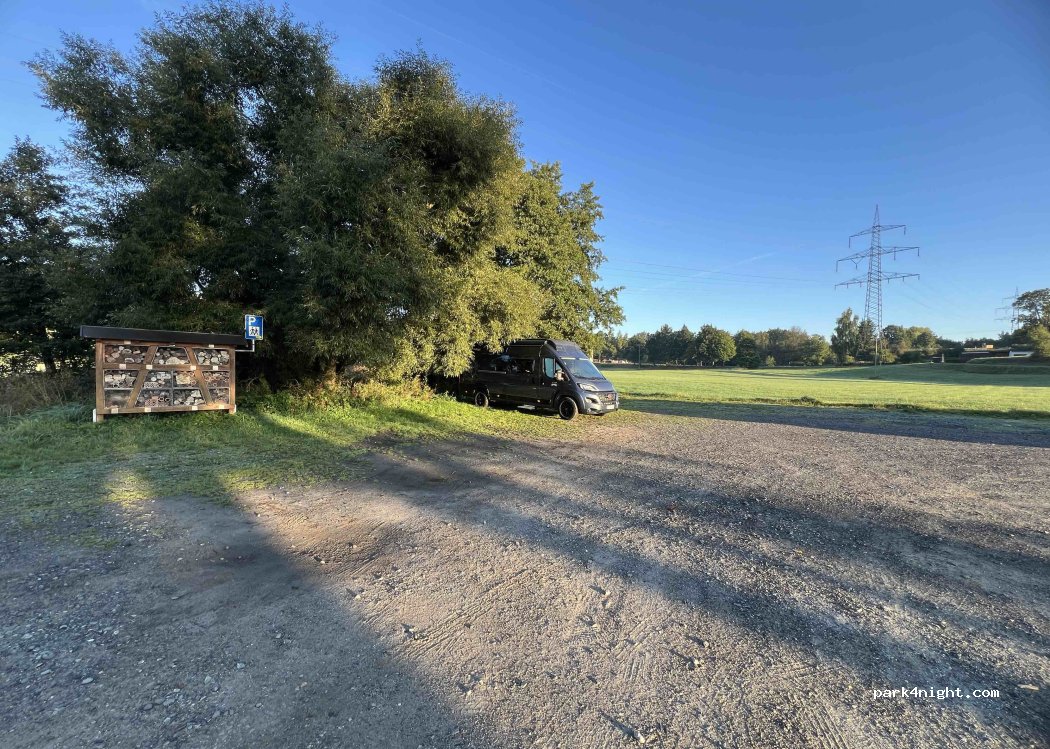 Sehr ruhiger, idyllischer Wanderparkplatz mit Platz auch für Gespanne und größere Wohnmobile. Morgens kommen gerne frühe Wandervögel ... Keine weitere Infrastruktur aber ein schattiger Tisch mit Bänken.