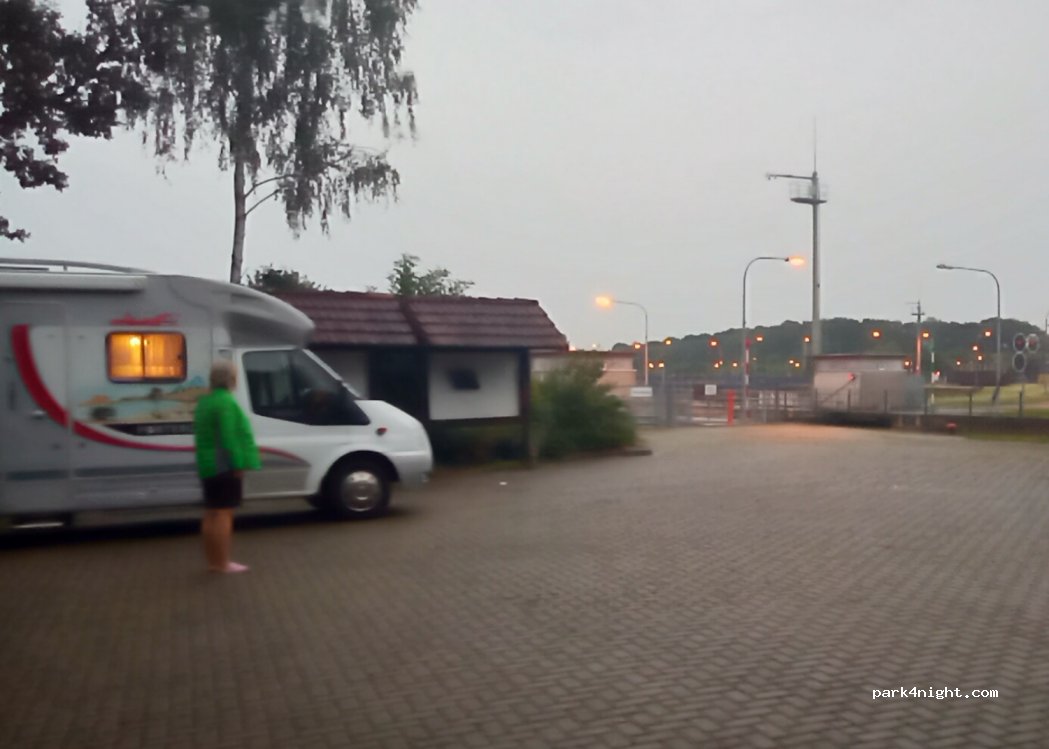 Direkt vor der Schleuse befindet sich ein ebener, gepflasterter Parkplatz mit Mülleimern. Ein schöner Stellplatz für ca. 4 Wohnmobile für eine Nacht oder Technikbegeisterte für einen kurzen Zwischenstopp. LTE-Empfang.