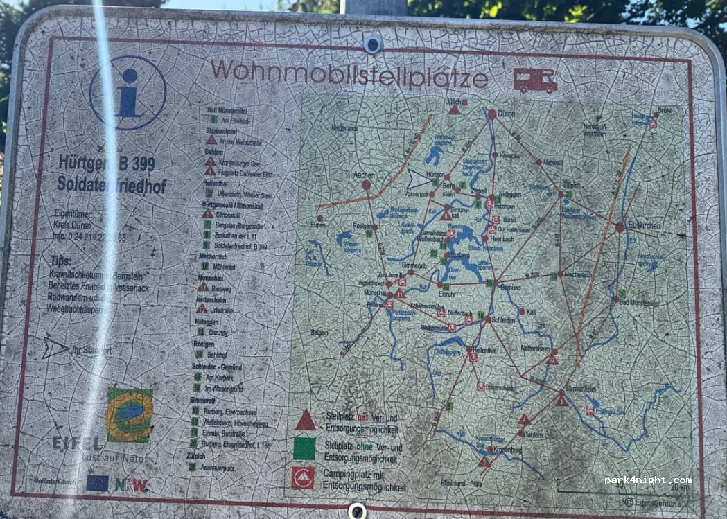 Free parking outside the village of Hürtgen. Hard surface. Dogs are allowed. Open year-round.