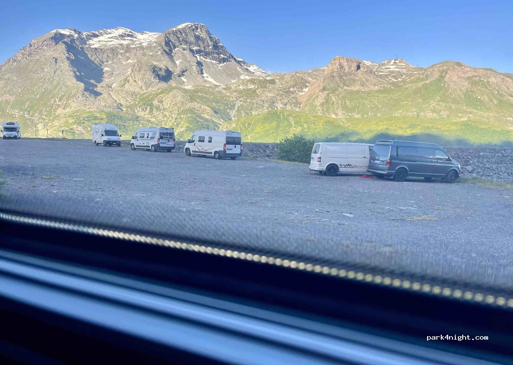 Great spot for the night, was windy overnight though due to the exposed location so the van was shaking a bit. There are some picnic benches and sun loungers here too. Lots of walks from here and also lots of Marmots roaming around the surrounding area. Beware! Access from the road South-east of the parking, not from the area of Hotel Malamot, that access is very rough and not suitable for many vehicles.