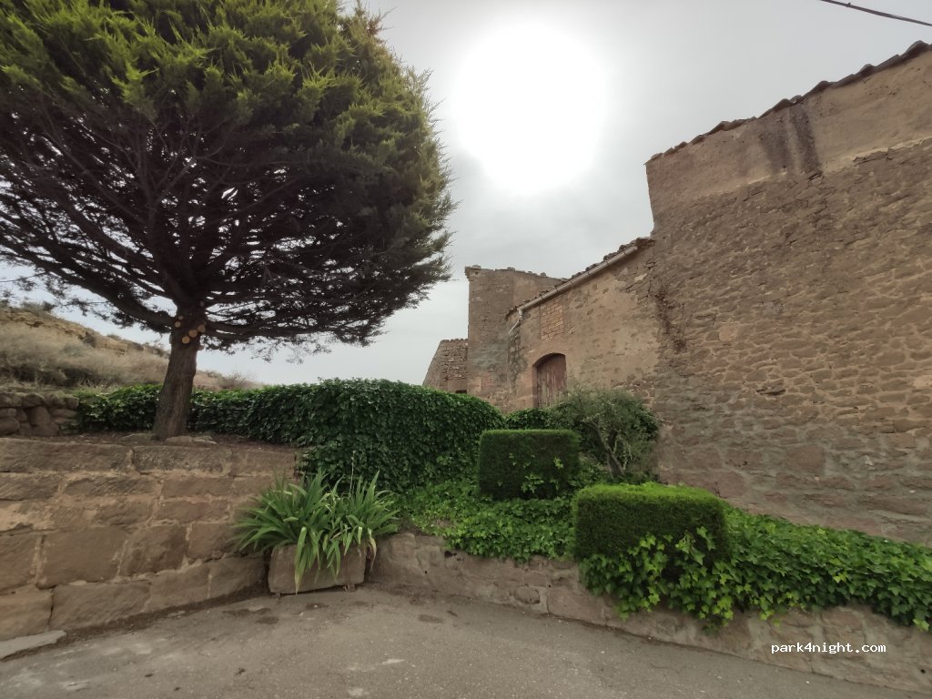 Place to park and see the Castle of Les Puelles. There are nice trails and a large raft with orchards behind the very cool castle. For the overnight we recommend doing it at the Hipica Obrint Camí a few meters away and accessible with large motorhomes.
