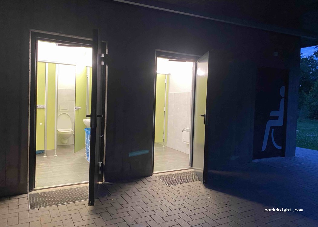 We stayed here on a Friday night, were quite happy with the surroundings - forest, lake, little cars parked, and even a lake house with clean public toilets, although they were locked after 21:30. However, in the middle of night, we were woke up by very heavy party musics, and lasted too long for a good night sleep, very unfortunate!