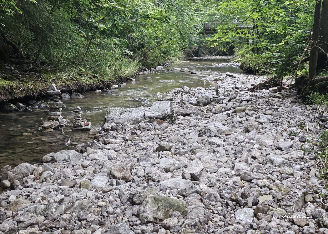 Idyllic parking lot for hikers, perfect for a quiet night. Exactly, hardly visible from the street. Barbecue area a bit along the stream.