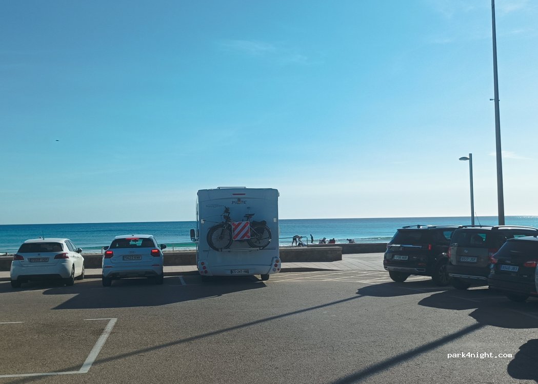 Öffentliche Parkplätze, schöne Gegend nur wenige Meter vom Strand entfernt, Restaurants und Bars, Carrefour und Märkte. Kinderpark, Ausflüge, schöne Wander- und Radwege. Wir haben die Nacht mit anderen Reisemobilen verbracht.
