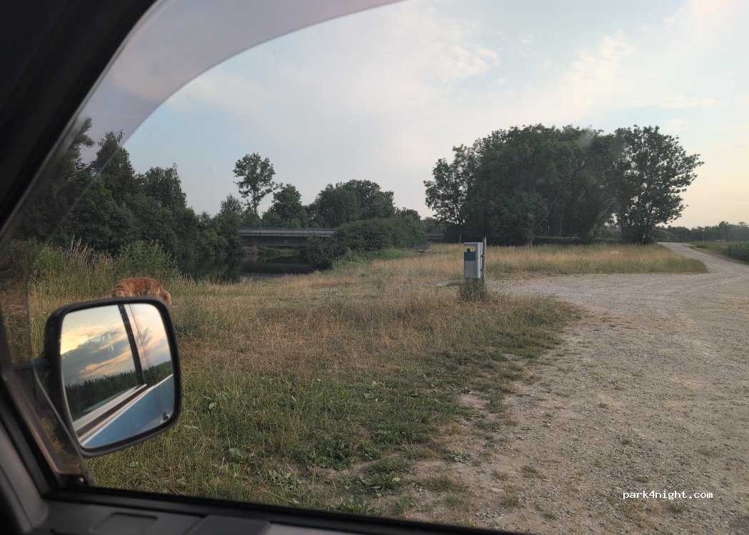 Sehr zu empfehlen! Wir konnten eine ruhige Nacht hier verbringen. Aussicht ist super mit dem Fluss und Feld auf der anderen Seite. Einige Spaziergänger, Radfahrer etc. sind bei gutem Wetter unterwegs, freundlich. Holzbank vorhanden. Jederzeit wieder.