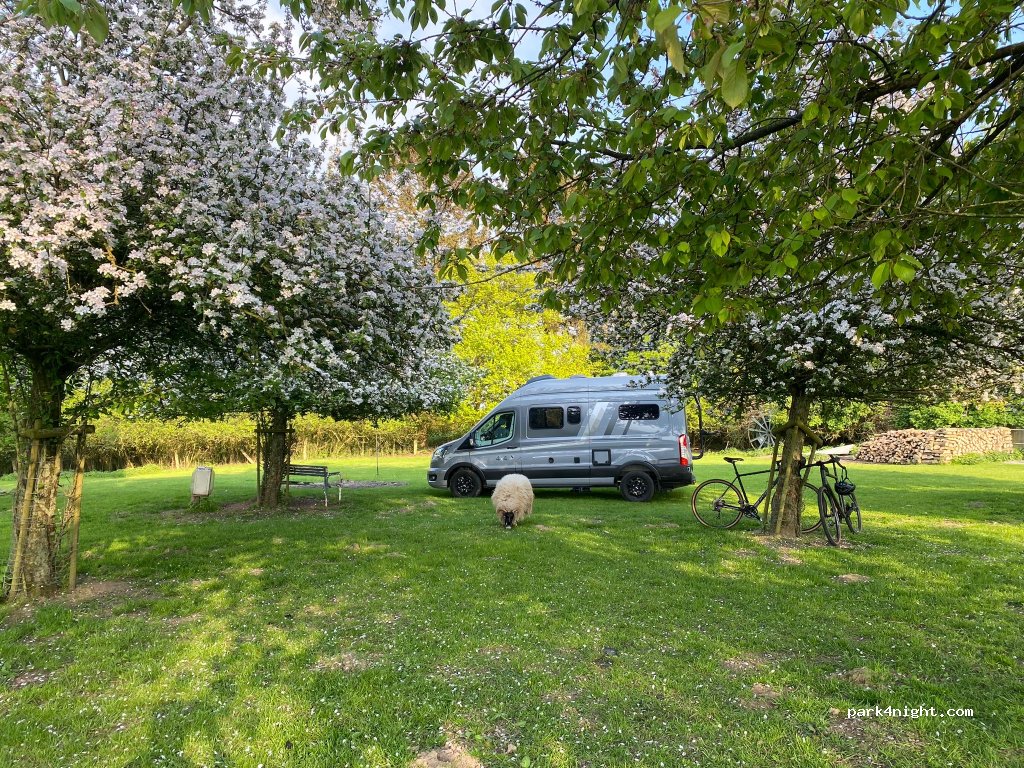 Mir hat es hier sehr gut gefallen. Ein sicherer Platz der das stehen zwischen Obstbäumen ermöglicht. Schafe die über die Wiese trotten runden das urige Gefühl ab. Selbst wenn 5 Fahrzeuge hier stehen verteilt sich alles gut und die Atmosphäre bleibt toll. Der Empfang ist sehr unkompliziert und freundlich gewesen.