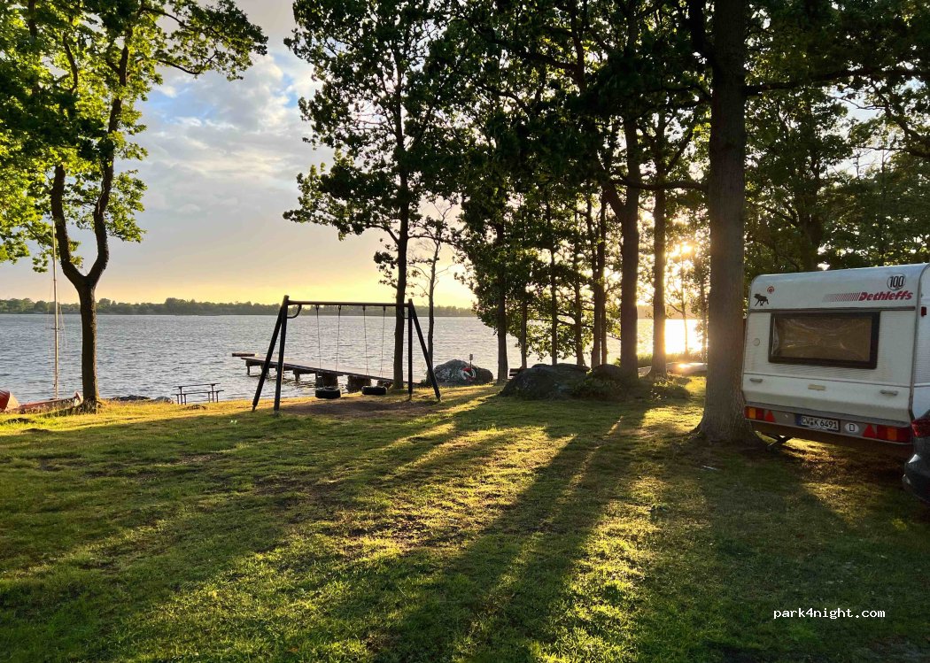 Wir haben einen wunderschönen, leicht erhöhten Platz am Wasser unter grossen Eichen erhalten. Sanitäre Anlagen waren am ersten Tag sehr sauber und gepflegt, die Nacht sehr ruhig. Sehr freundliches Personal. Mit der Ankunft neuer Gäste hat sich dies mit der Sauberkeit und Ruhe leider etwas negativ entwickelt. Schade, dass es auch unter Campern viele Egoisten hat! 340 SEK m. Strom. 5 SEK f. Dusche