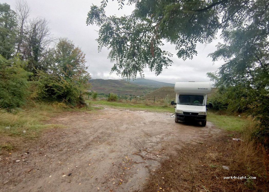 Quiet place behind the hermitage. Only two vans or a motorhome can fit, but it is flat and quiet. A little dirty, but no bad smells, and the views make up for it.