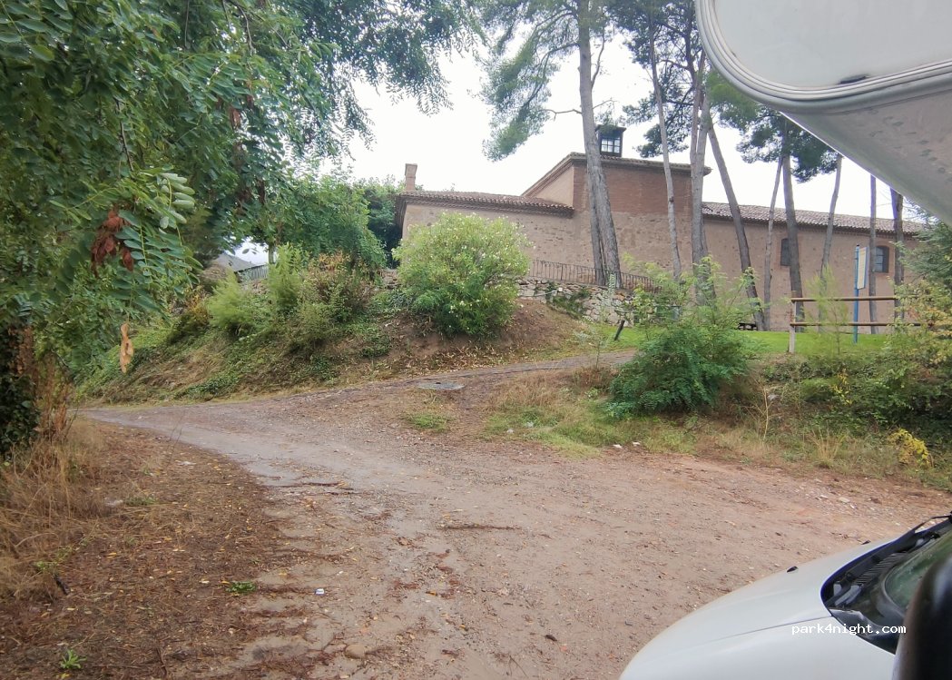 Hemos pasado una noche muy tranquila. Hasta medianoche había 2 coches que luego de cenar se marcharon. Había perros ladrando al principio de la noche y luego dejaron de ladrar. Hay mesas al lado de la ermita.