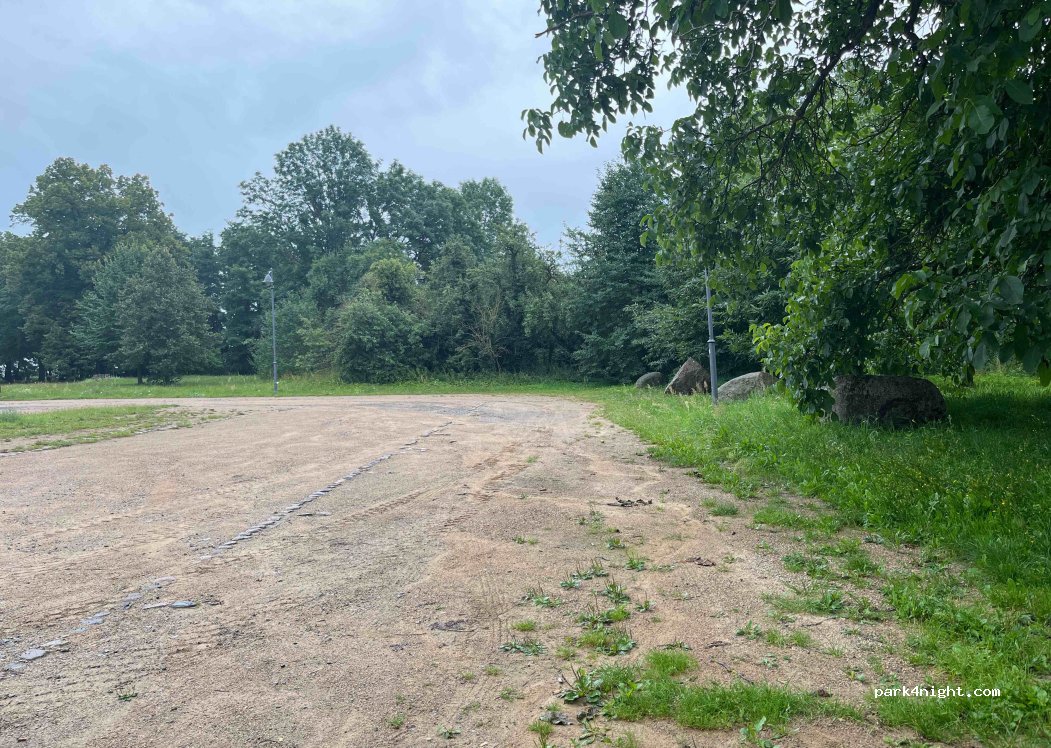 Free parking lot opposite an estate (not inhabited, event location), lightly lit and surrounded by hedges, very quiet, good starting point for hikes, etc. Since the parking lot is on the edge of the opencast mine, it is approached by the company security service. We had a very nice chat with the employee, he also said that it is okay that we are standing there, after all, it is a public parking lot and campers or cars would be there more often. They don't send a route and just look for the right one. He even informed his colleague that he knows that we are standing there and that we are harmless.