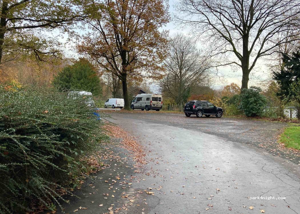 Parking forestier asphalté à l'orée de la forêt et du cimetière, très calme, l'endroit est tordu, se tenir droit n'est possible qu'avec des cales. L'endroit est à l'extérieur de Lemgo, l'accès est une route plus étroite à la lisière de la forêt. Veuillez garder l'endroit propre et ramener vos déchets avec vous. Fourniture et élimination au CP local (cher) ou à Detmold au parking du camping-car.
