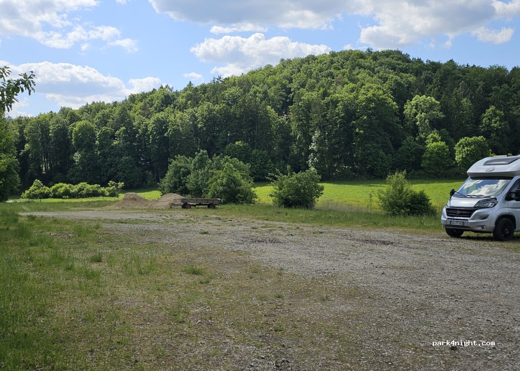 Parking au château de Neidstein. Très bien situé pour des randonnées dans la région et pour admirer le château du Tabernacle de l'extérieur. L'endroit est immense, malheureusement un peu en pente, mais plus bas il devient droit. Le Hirschbachtal est à quelques kilomètres et un supermarché à Neuenkirchen est également au coin de la rue.