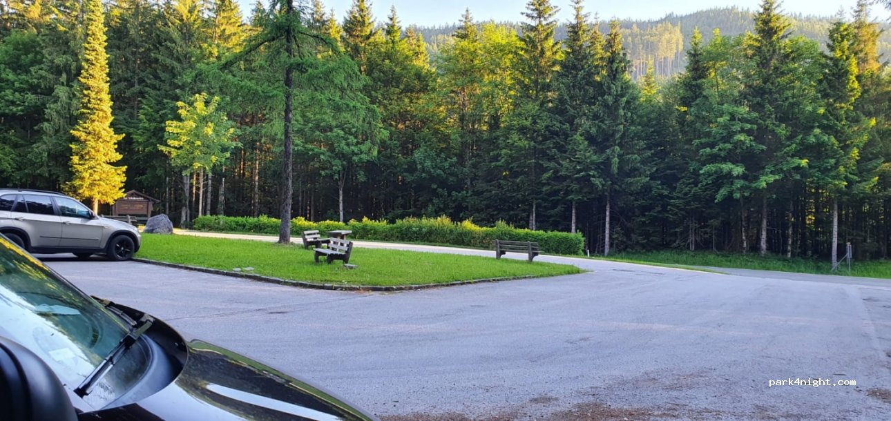 Großer Patkplatz neben dem Wald gelegen, haben hier eine Nacht verbracht, keine Verbotsschilder. Nachts hört man einige Tiere und früh morgens (bereits ab 5 Uhr) treffen schon die ersten Wanderer ein. Guter Ausgangspunkt zum Wandern.