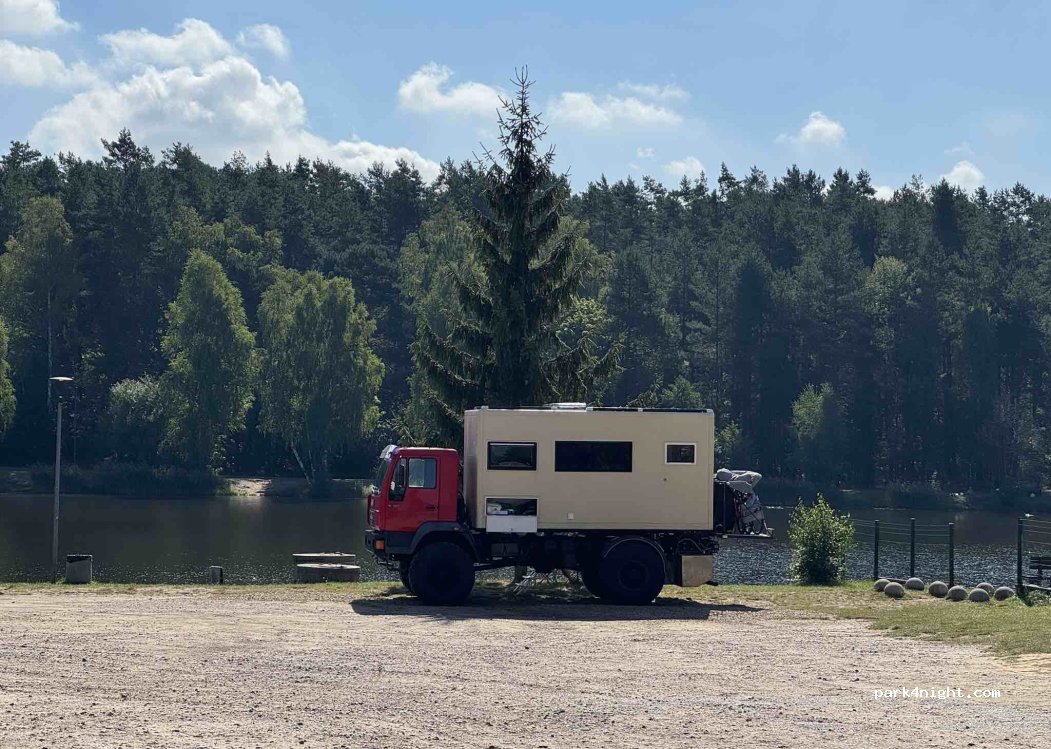 On the other side of the lake (opposite the marked parking area), there is a large place where you can park. Plenty of motorhomes can fit there. When we parked, we happened to arrive during the Polish Championships in model powerboat racing, so it was a bit noisy and crowded. But the spot itself is fine.