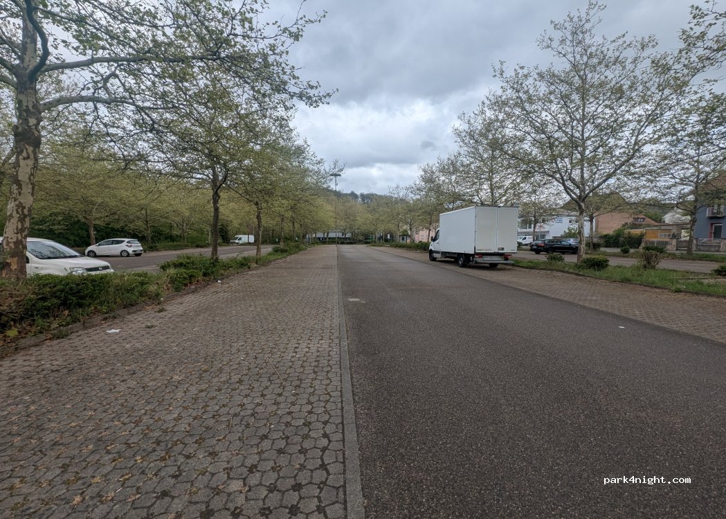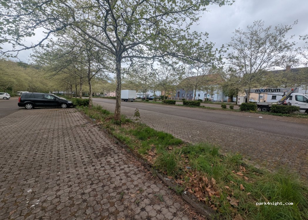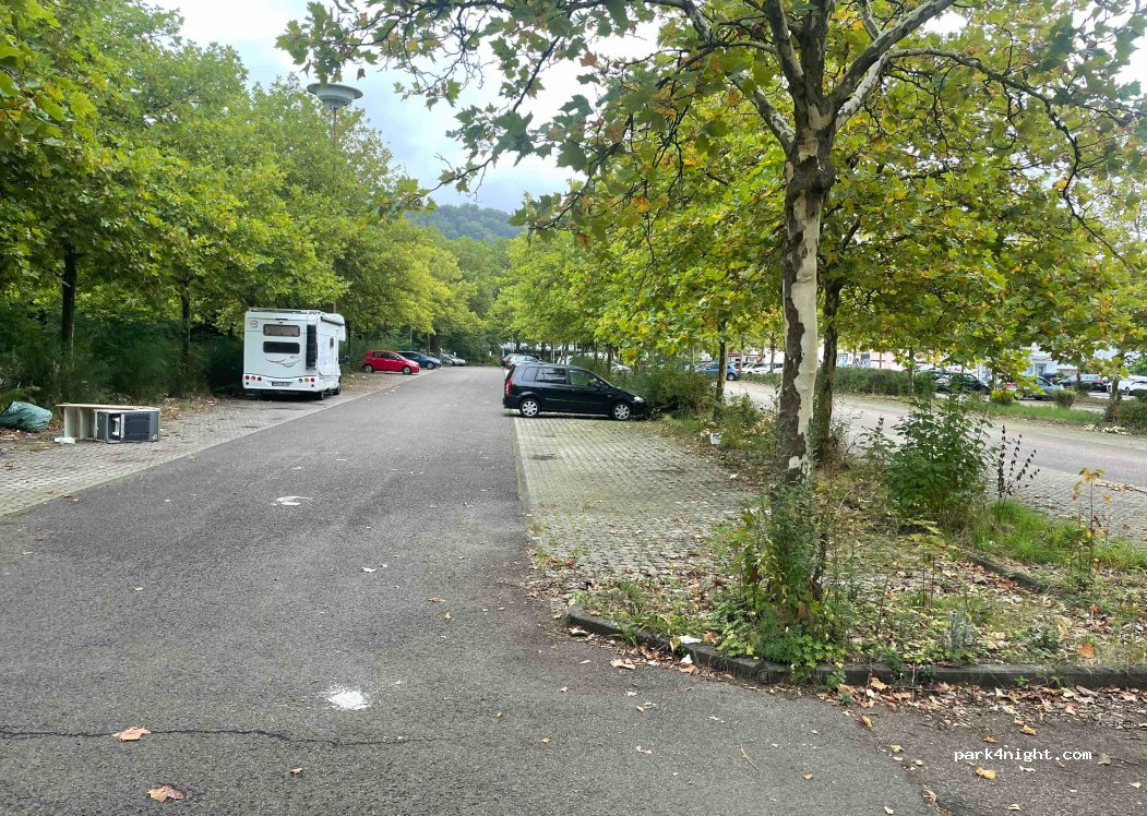 Parking d'entreprise d'une entreprise fermée. Beaucoup d'espace et accès direct à la Sarre par un petit chemin. Possibilité de randonnées à Halberg et de jogging. Recommandé pour une escale.