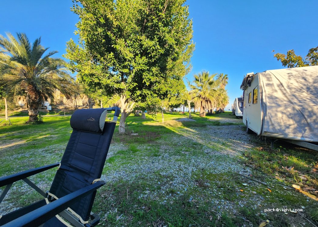 Empfehlung! Auch für große Fahrzeuge geeignet. Superschöne Stellplätze auch direkt am Strand, unparzelliert,eben,sandig, Schatten oder Sonne . Strom sowie Wasserver- und -entsorgung sehr gut. Sanitär gerade noch OK, Dusche haben wir nicht genutzt. WM gut, 100 TL. Betreiber sehr nett. Am SA Musik aus der Umgebung.