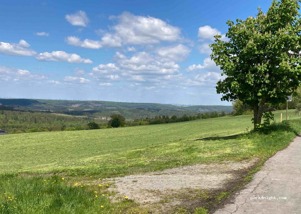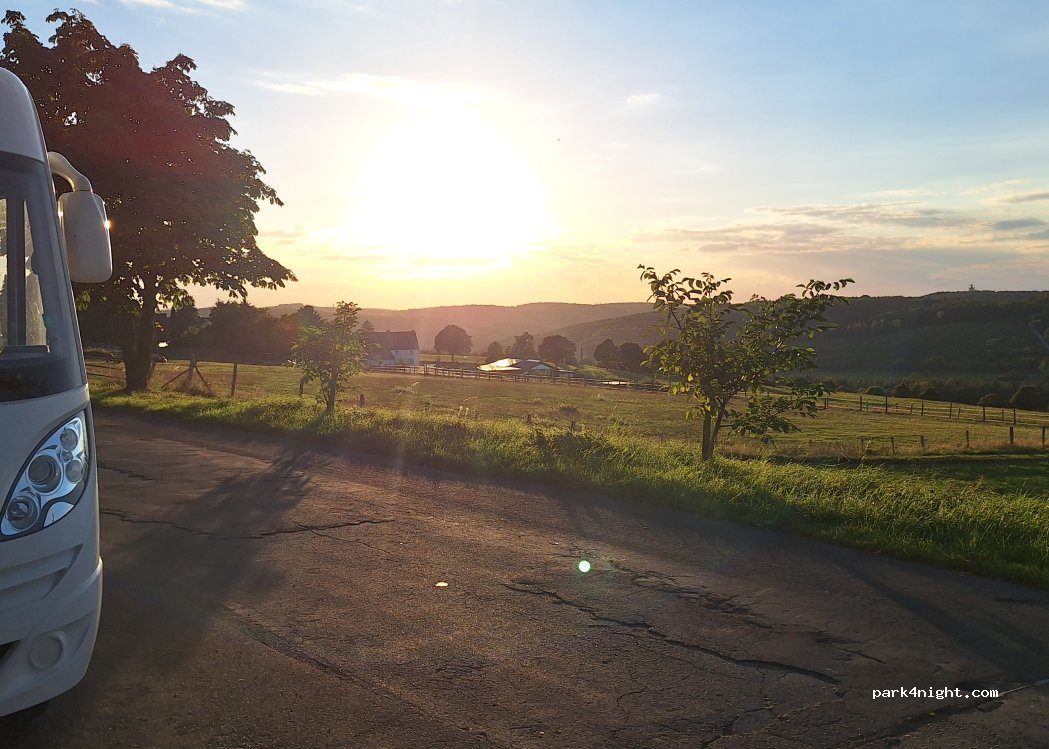 Asphaltierter Parkplatz an einem Sportplatz am Ortsrand. Tolle Weitsicht, nachts ruhig, tagsüber sieht man den ein oder anderen Spaziergänger.