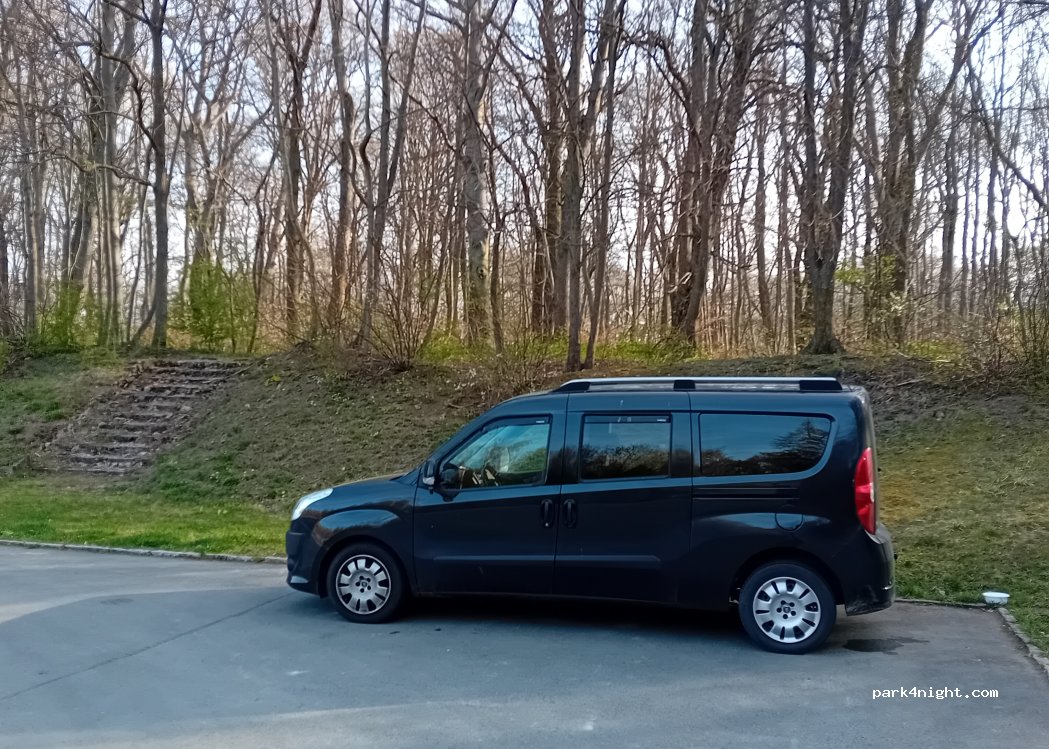 Recht großer Parkplatz, eben, sehr ruhig. Optimal für einen Besuch in der Gedenkstätte. Übernachtung ohne Problem möglich.