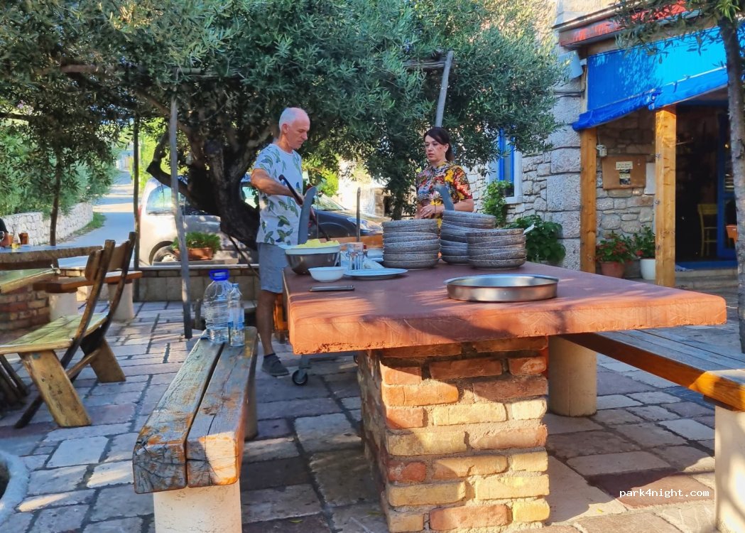 Der Camping von Alen und seiner Frau ist ein Traum! Man steht unter Olivenbäumen mit einem tollen Blick auf einen kleinen Hafen! Alen kocht unglaublich gut und man kann am Abend dort leckren Fisch/ Meeresfrüchte (fangfrisch!)und Fleisch essen! Wir haben es sehr genossen. Aus 1 Nacht wurden 5☺️Wir kommen wieder!