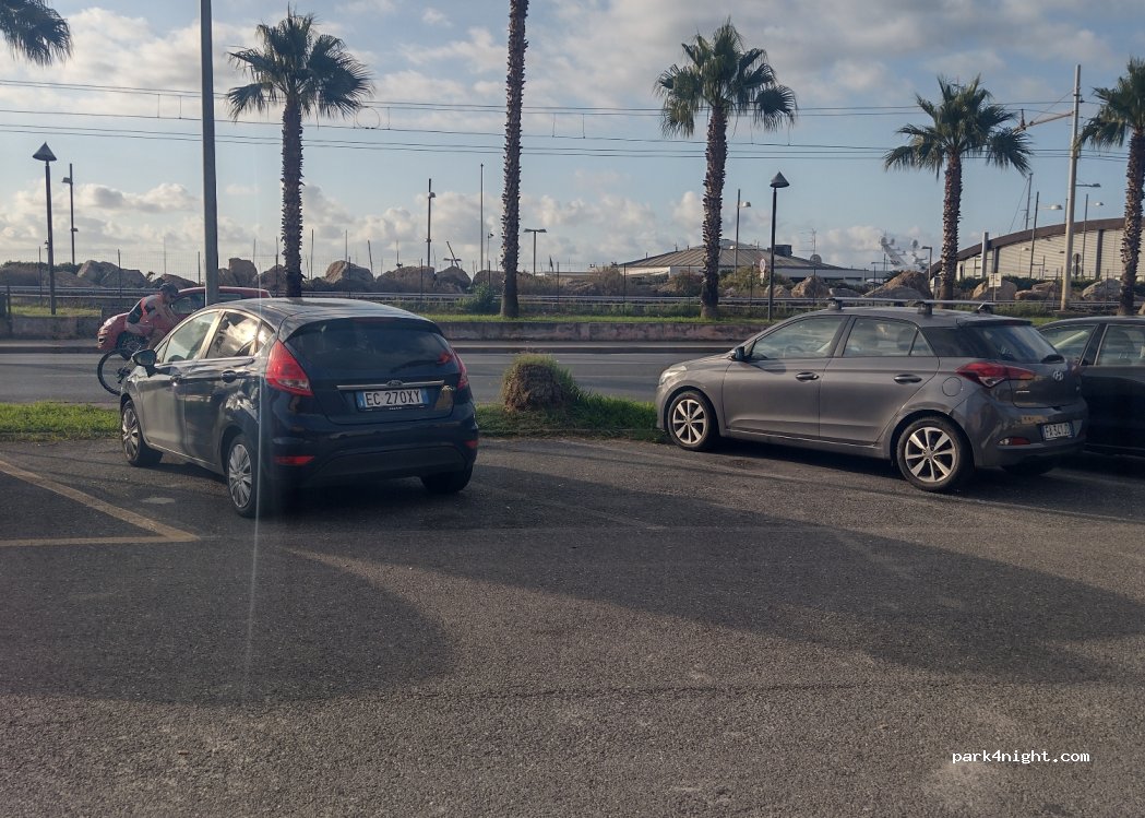 Sehr stark frequentierter Parkplatz am Straßenrand. Ungefähr zehn Plätze. Kein Komfort. Kann für eine Nacht aushelfen, wenn es nur um das Parken über Nacht geht. Schließen Sie den Zugang zum Strand am nächsten Tag. Kostenlose Parkplätze tagsüber Free