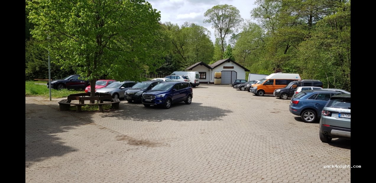 Ein eher vernachlässigter, zudem unebener, kleiner Parkplatz am Dorfende mit Müllentsorgung. Es befindet sich mittlerweile noch eine Halfpipe darauf, dh mind die Hälfte der Plätze sind weg. Für den Notfall sicherlich ok, aber für Leute wie mich, die diese lange, kurvige Strecke bewusst angefahren sind, doch ärgerlich.
