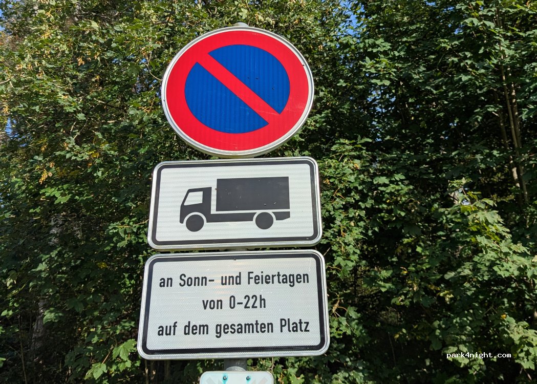 An Sonn- und Feiertagen ist das Parken zwischen 0-22 Uhr auf dem gesamten Gelände verboten.