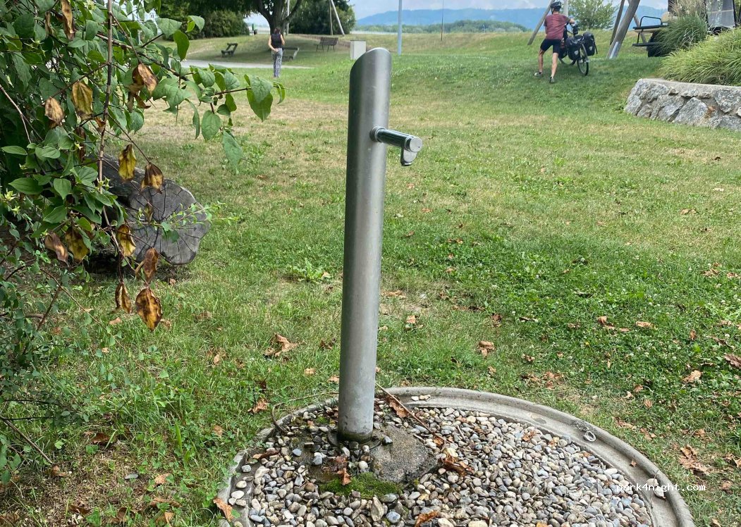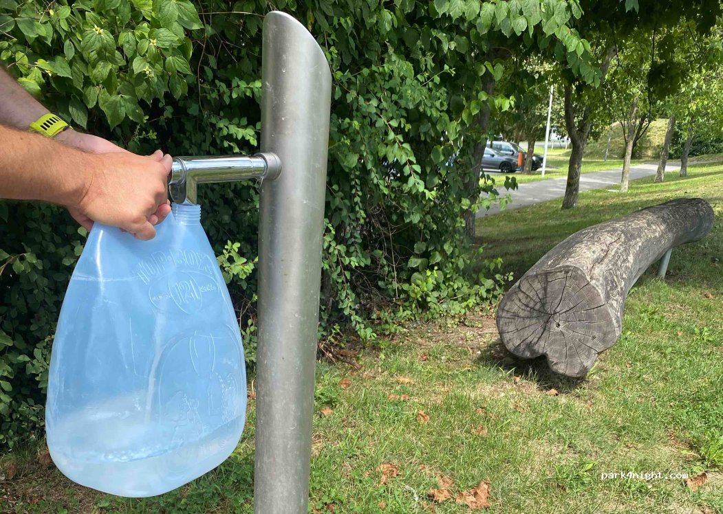 Les emplacements sont sympa, mais attention la fontaine ne permet pas la recharge avec un tuyau ou même un jerrican...