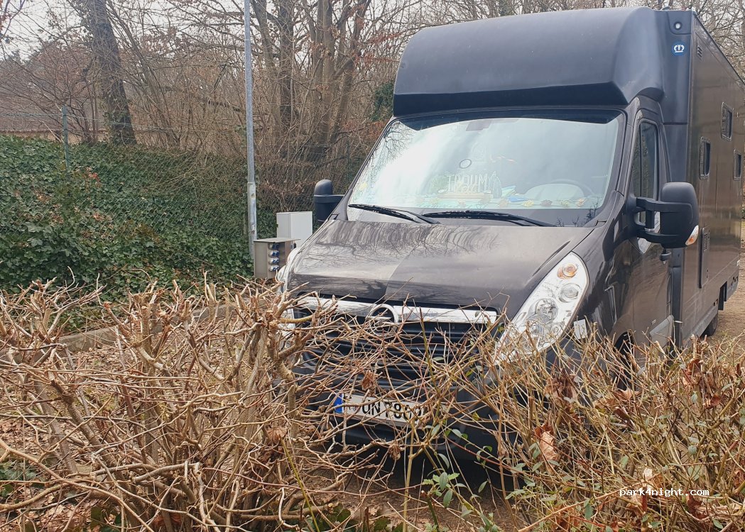 Arrived just after 8 p.m. and it was full, so I parked next to the marked RV area in the car park — no problem. Quiet spot, 4 pitches with electricity, free up to 5 nights. Grey water disposal works, but water refill is out of order and can’t be repaired. A new unit was ordered (20.03.2025), delivery time ~6 weeks — don’t expect water before May.