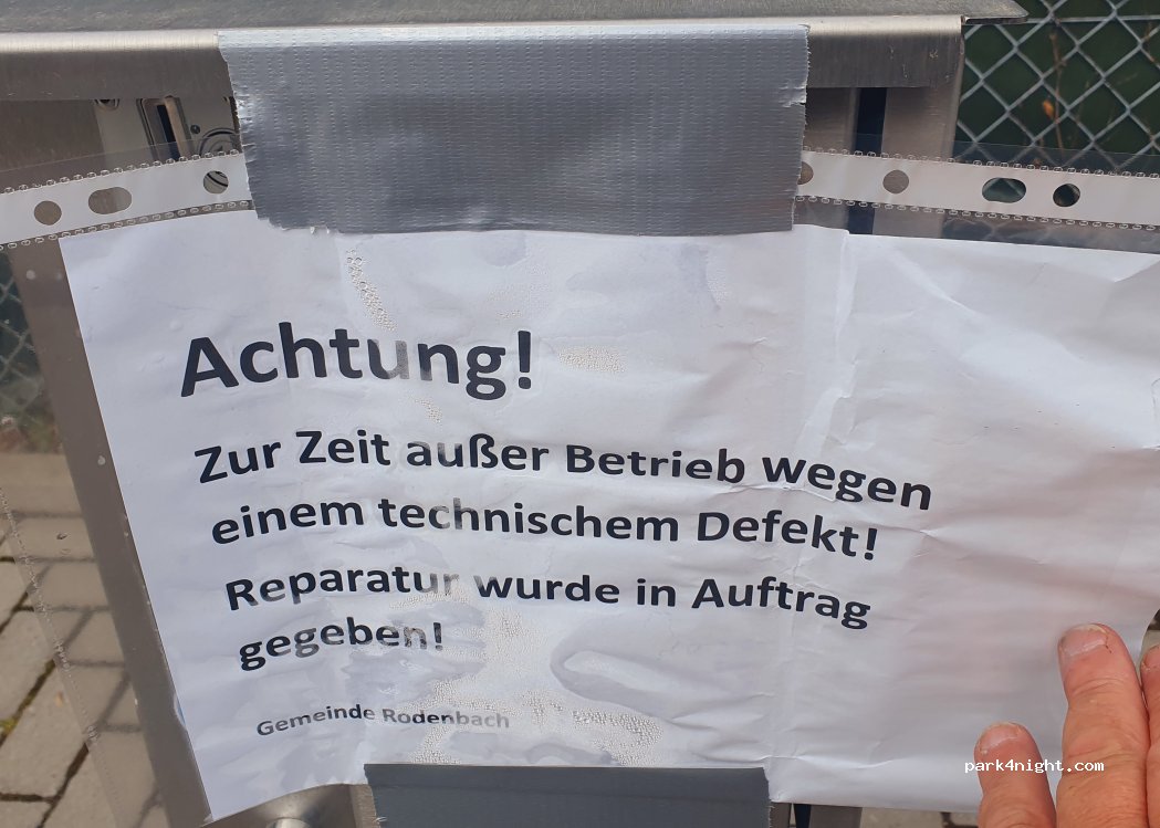 Toller Übernachtungsplatz mit 8 Stromanschlüssen. Wir waren eine Nacht hier (Mittwoch) und haben die Ruhe genossen. Vielen Dank an die Gemeinde Rodenbach für diesen Stellplatz und dessen Unterhalt. Die gesparte Parkgebühr haben wir in die ansässige Gastronomie (Pizzaria Da Bruno) investiert ;-)