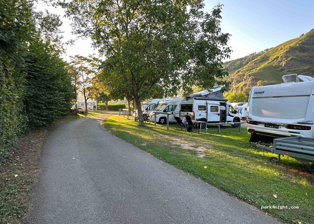 Nice location on the bank of the Mosel river. Many long term campers. All friendly. Price for campervan (one person - no electricity) on the grass was around 18 EUR - a bit to high for the standard of the place.