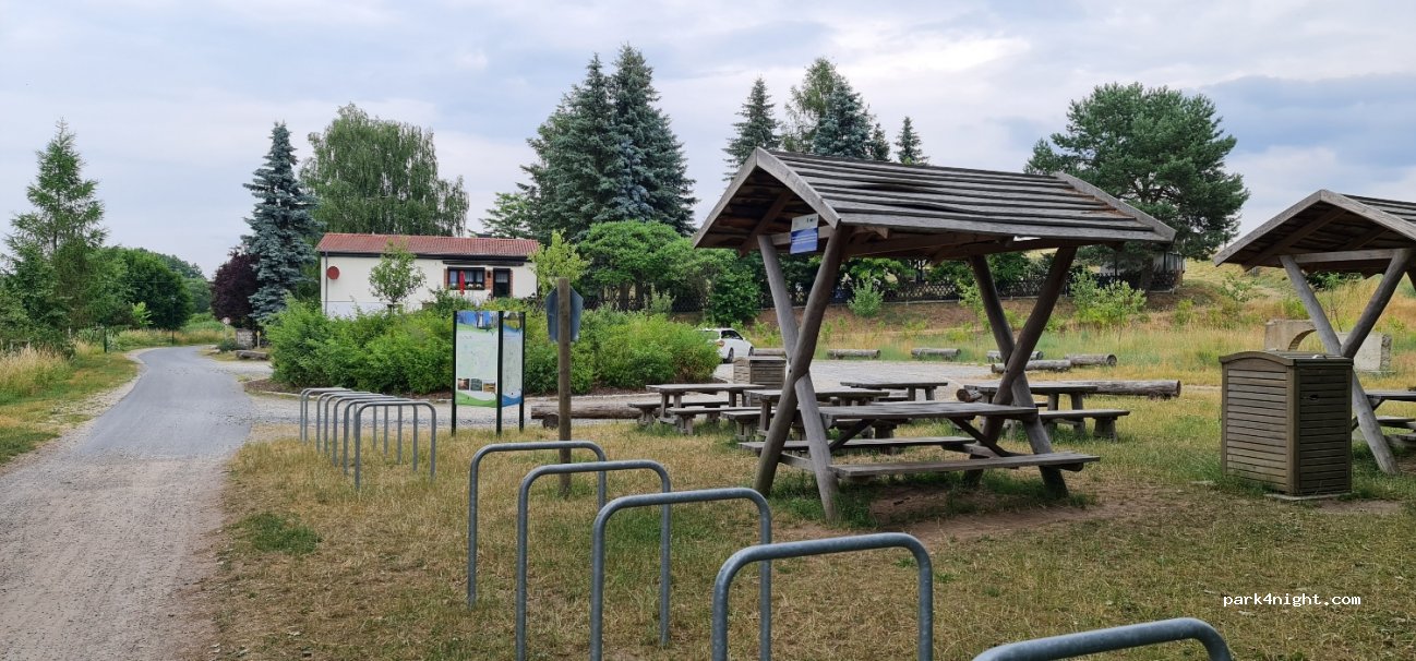 Estacionamiento pequeño y tranquilo, desde el que se pueden iniciar excelentes caminatas y recorridos en bicicleta en la cuenca del Biesenthaler.