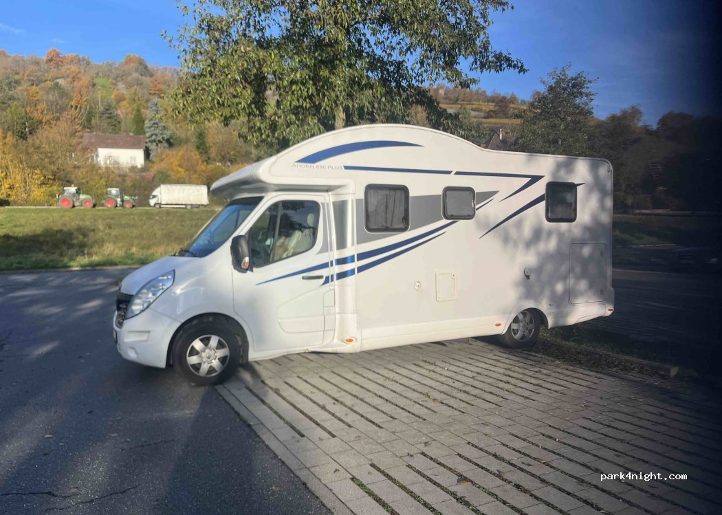 Normaler PKW Parkplatz, man kann mit 7m in eine Lücke, dann stehen ca.1m in der Fahrbahn oder man steht quer auf 3-4 Plätzen, es gibt keine Verbotsschilder, schade das die Stadt Weikersheim hier keine passenden Wohnmobilplätze ausgewiesen haben. Für eine Nacht ok.