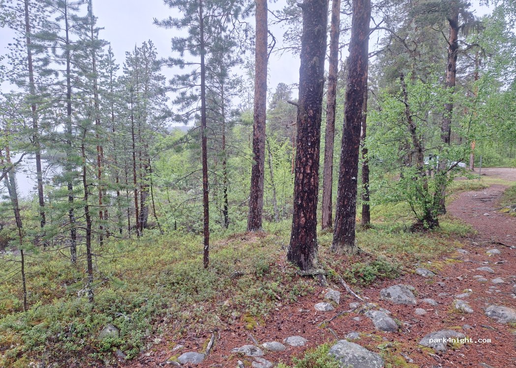 Bel emplacement, proche de la route mais suffisamment éloigné pour ne pas être dérangé. Je n'ai trouvé aucun endroit où il était interdit de passer la nuit. Les Finlandais y passent aussi la nuit.