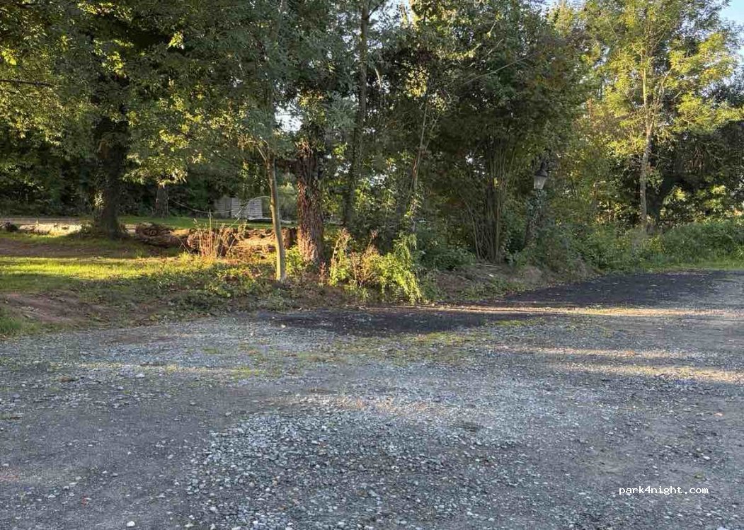 Simple, gravel parking lot at the Golf-Club Neuhof eV, surrounded by trees. Very quiet location. There is a charging station for electric cars. No infrastructure. There are toilets in the nearby Gutschänke or in the golf club