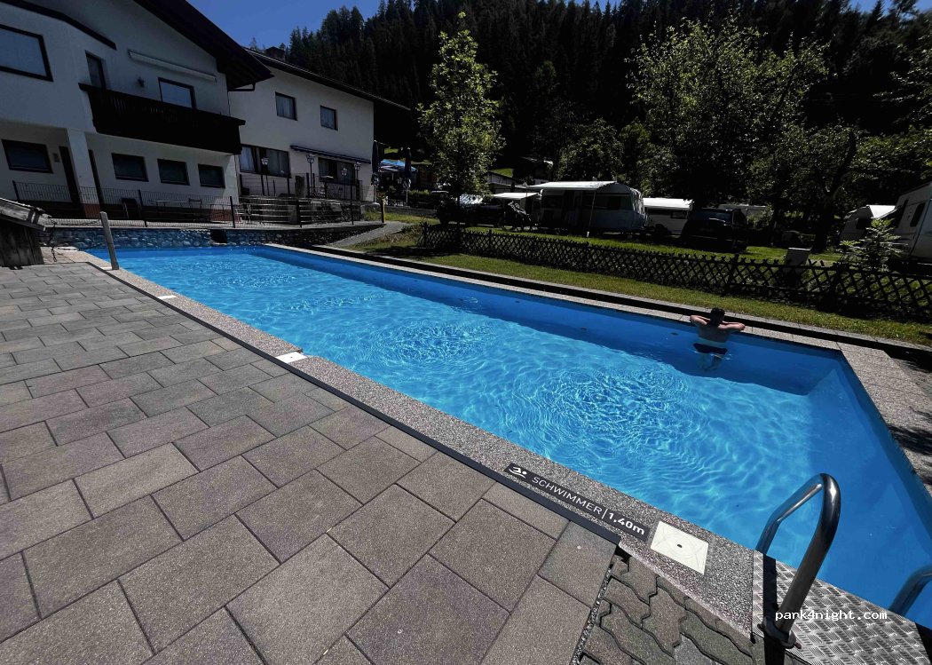 joli petit camping. les sanitaires sont vieillissants mais sont propres et sentent bons. il y a la piscine et un petit resto très sympa. nous avons payé 34€ pour un fourgon+2 personnes avec l'électricité . depuis que nous sommes en Autriche c'est le moins cher qu'on ait vu.