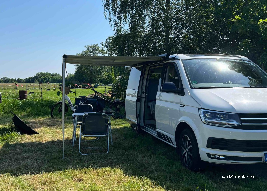 Trotz das der Besitzer nicht anwesend war, hat alles reibungslos geklappt. Er stand uns bei Fragen immer zur Verfügung und war sehr freundlich :) wir fanden den Stellplatz hinter dem Hühnerstall am besten. Wir waren mit der Buchung super spontan und hatten Glück, dass dort ein Plätzchen frei war. Mit dem Fahrrad fährt man ca. 20 km zum Norddeich.